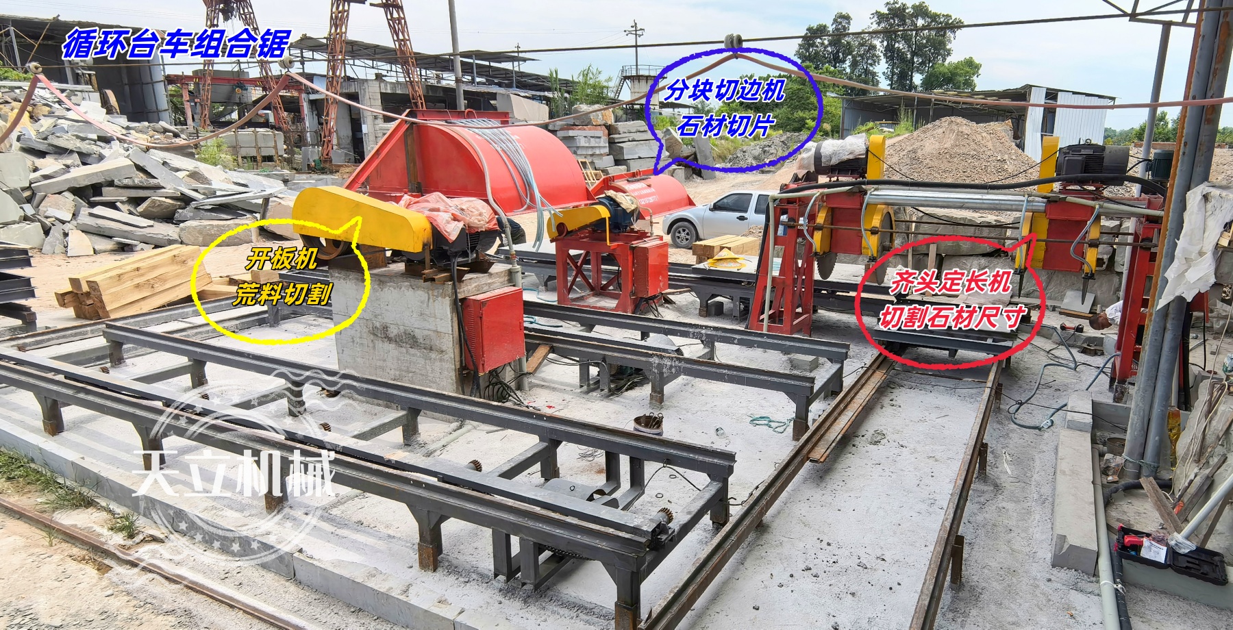 新循環(huán)臺(tái)車(chē)組合鋸由三臺(tái)設(shè)備組成(開(kāi)板機(jī)、齊頭定長(zhǎng)機(jī)、分塊切邊機(jī)),協(xié)同完成荒料開(kāi)板、定長(zhǎng)切割、分塊切邊全流程,構(gòu)建高效連貫的石材切割生產(chǎn)線。專(zhuān)為路沿石、條石、墓碑石等石材設(shè)計(jì),采用循環(huán)臺(tái)車(chē)與高強(qiáng)度鋸條技術(shù),實(shí)現(xiàn)連續(xù)精準(zhǔn)切割,提升生產(chǎn)效率30%以上。